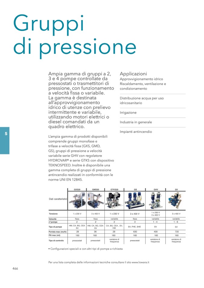 Per una lista completa delle informazioni tecniche consultare il sito www.lowara.it