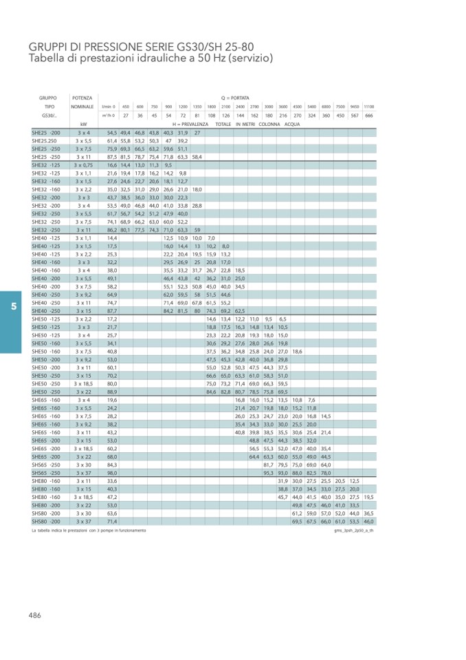 La tabella indica le prestazioni con 3 pompe in funzionamento