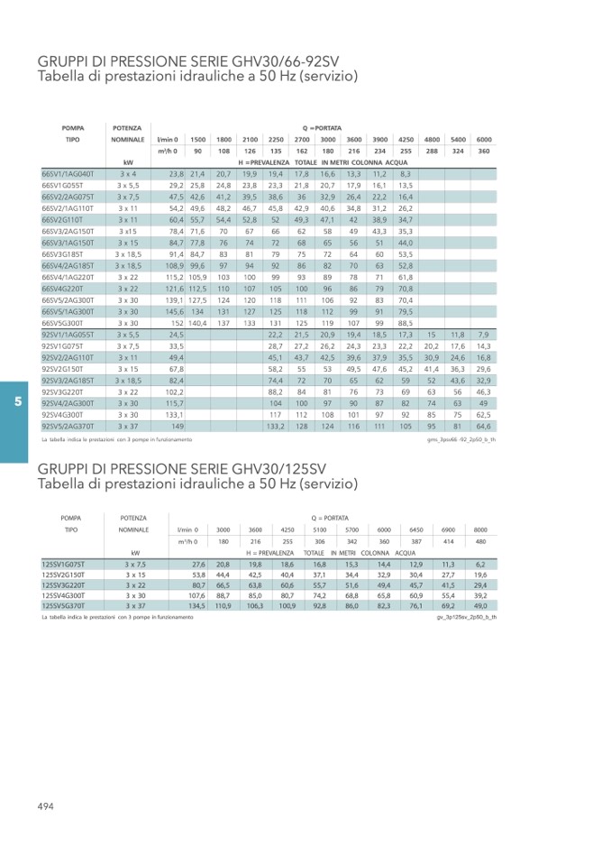 La tabella indica le prestazioni con 3 pompe in funzionamento