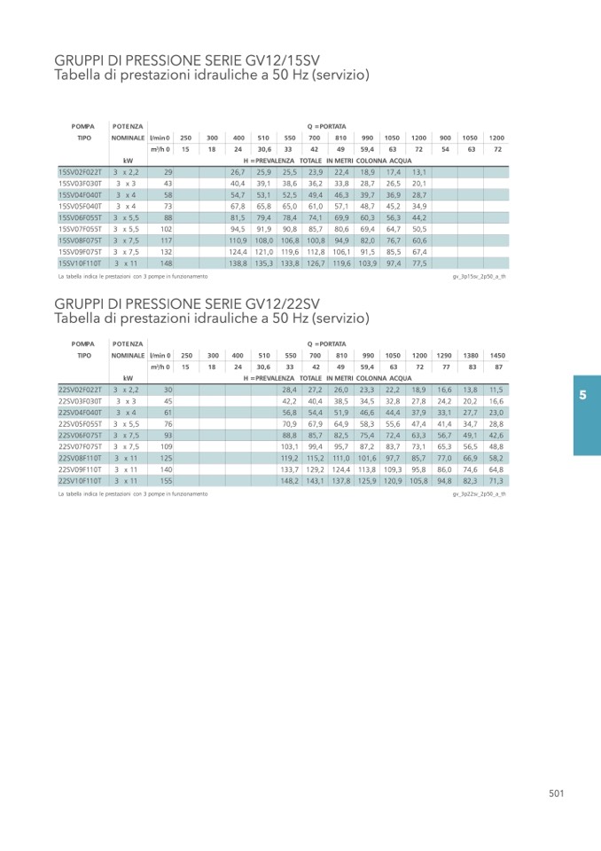 La tabellaindicaleprestazioni con3pompeinfunzionamento