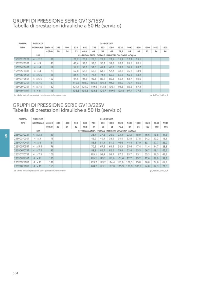 La tabellaindicaleprestazioni con4pompeinfunzionamento