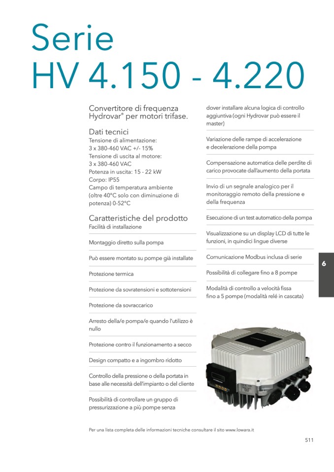 Per una lista completa delle informazioni tecniche consultare il sito www.lowara.it