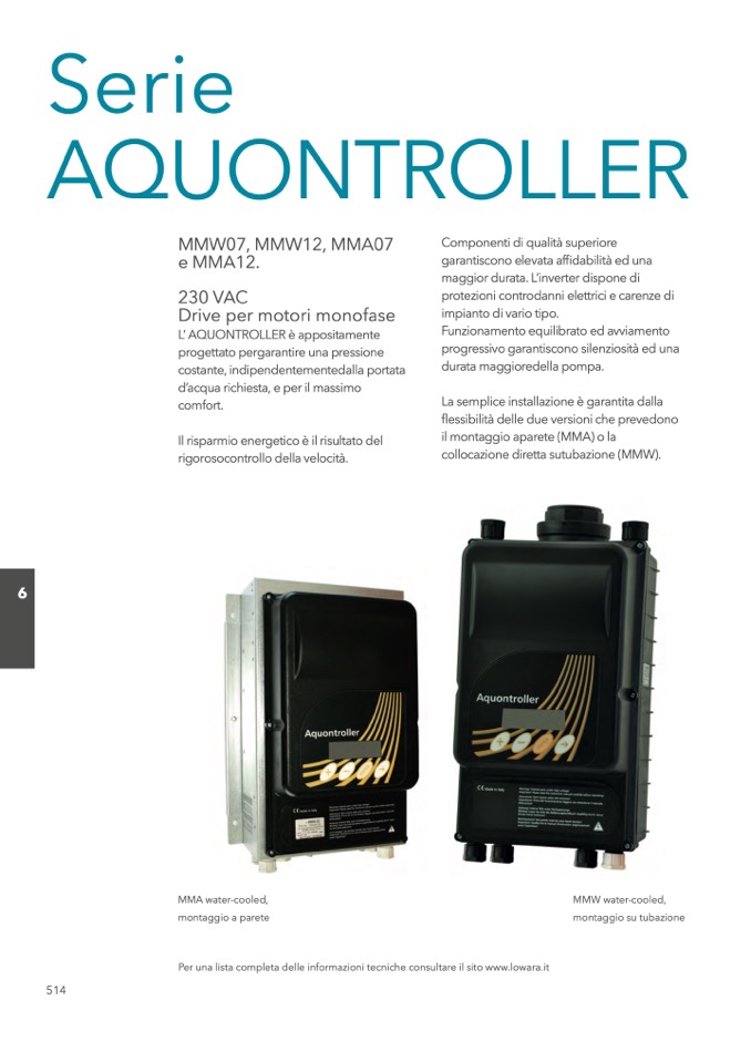 Per una lista completa delle informazioni tecniche consultare il sito www.lowara.it
