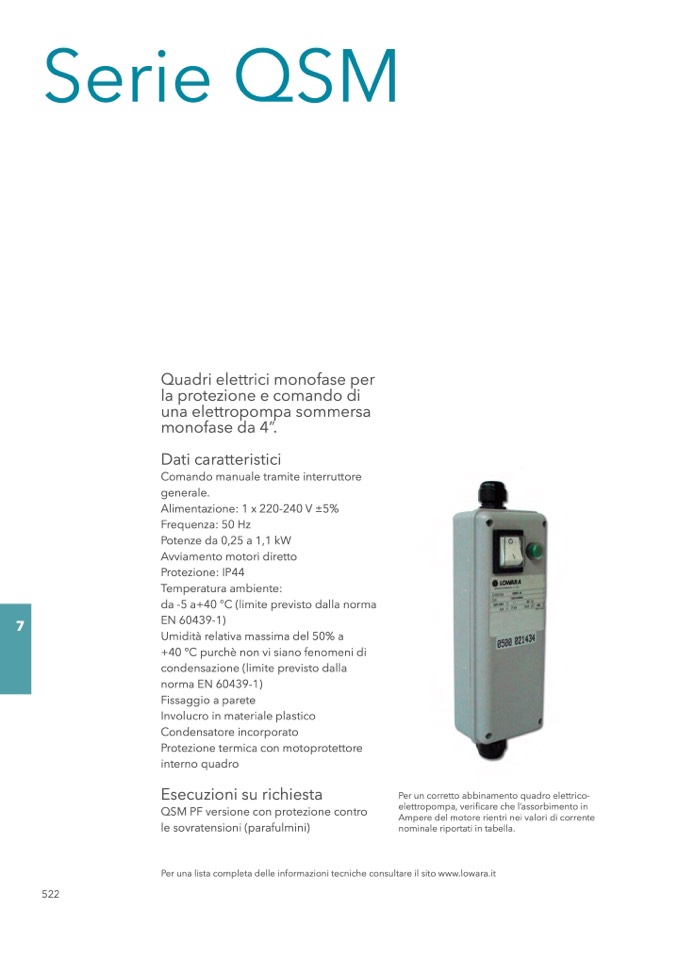 Per una lista completa delle informazioni tecniche consultare il sito www.lowara.it
