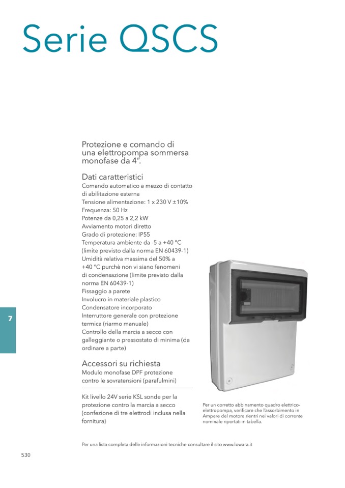 Per una lista completa delle informazioni tecniche consultare il sito www.lowara.it