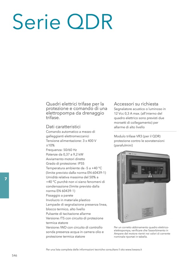 Per una lista completa delle informazioni tecniche consultare il sito www.lowara.it