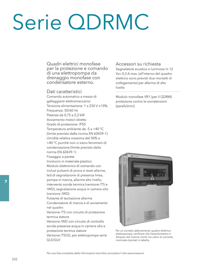 Per una lista completa delle informazioni tecniche consultare il sito www.lowara.it