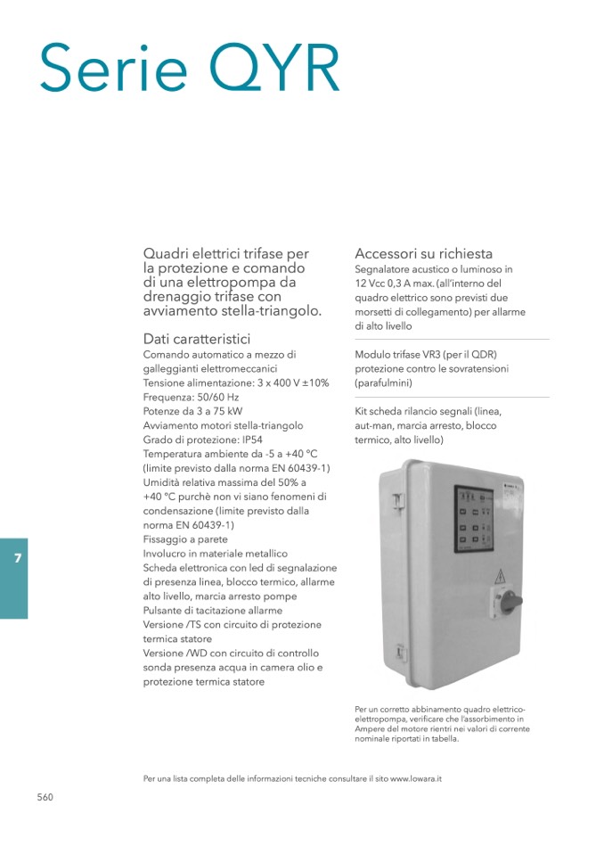 Per una lista completa delle informazioni tecniche consultare il sito www.lowara.it