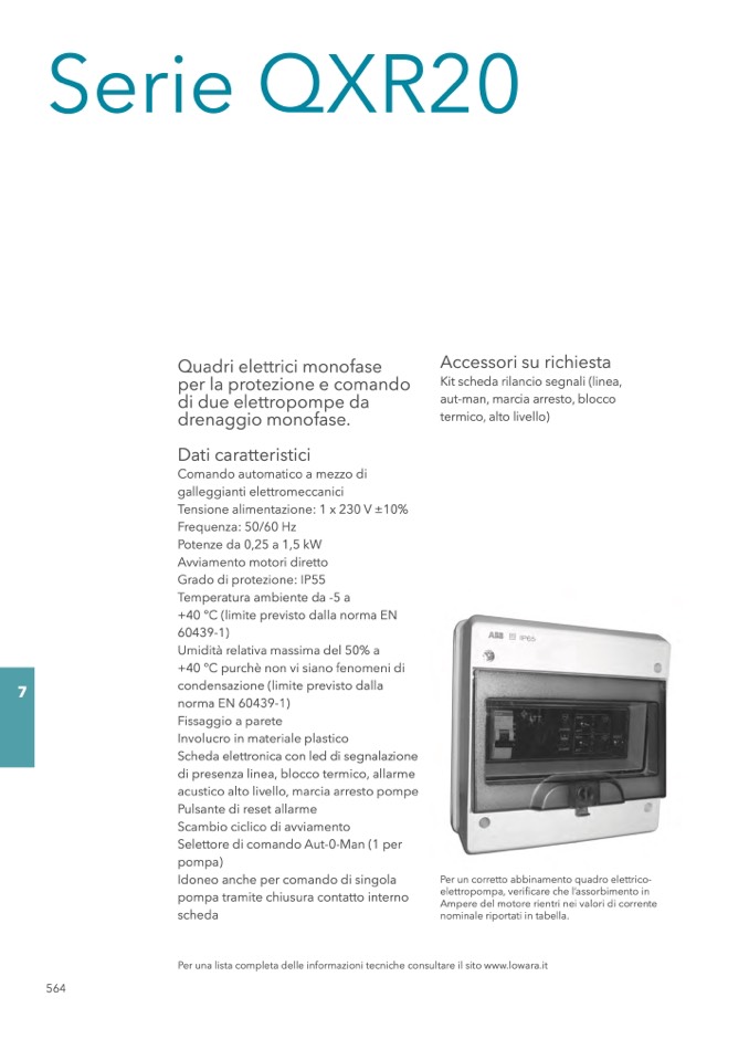 Per una lista completa delle informazioni tecniche consultare il sito www.lowara.it