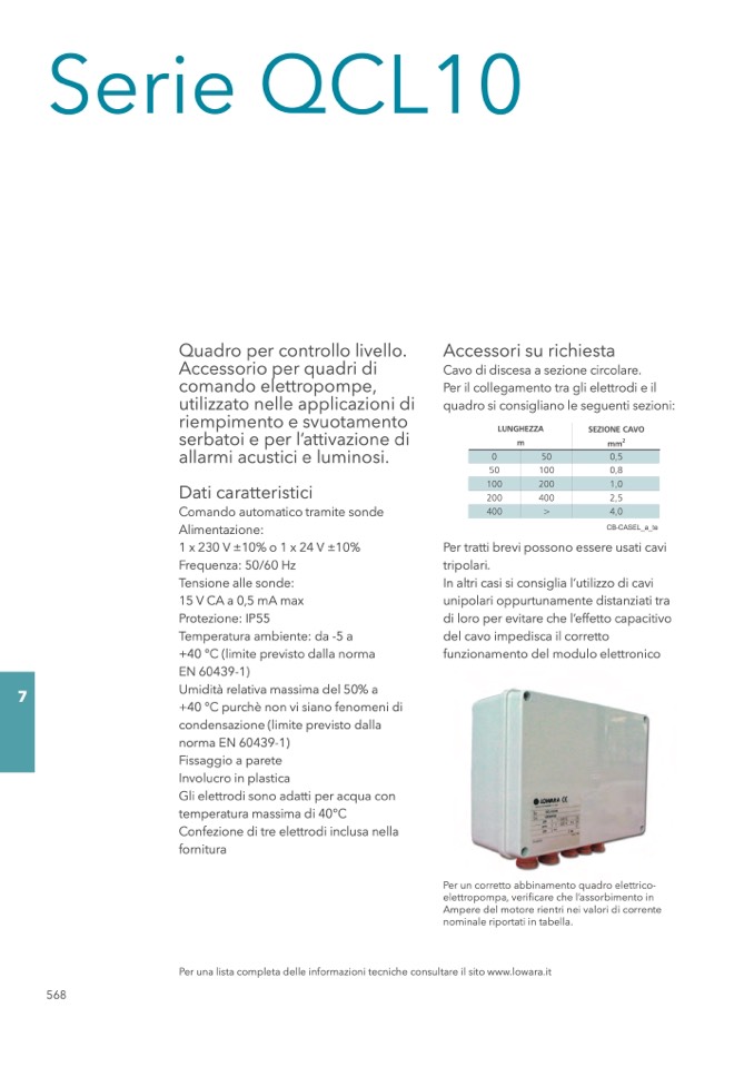Per una lista completa delle informazioni tecniche consultare il sito www.lowara.it