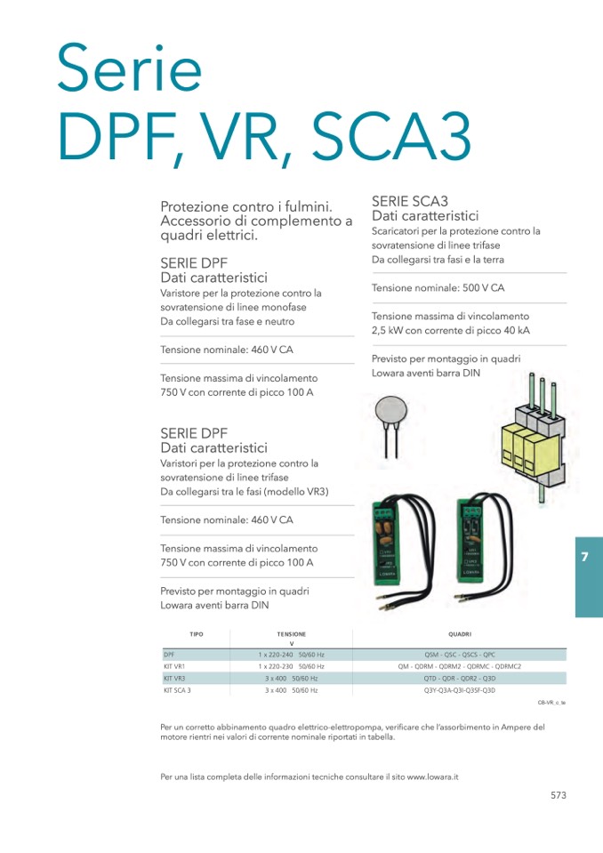 Per una lista completa delle informazioni tecniche consultare il sito www.lowara.it
