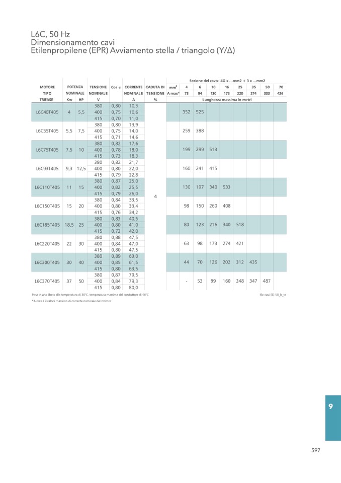 Sezione del cavo: 4G x ...mm2 + 3 x ...mm2
