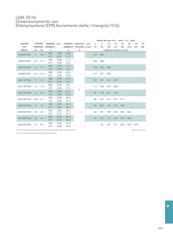 Sezione del cavo: 4G x ...mm2 + 3 x ...mm2