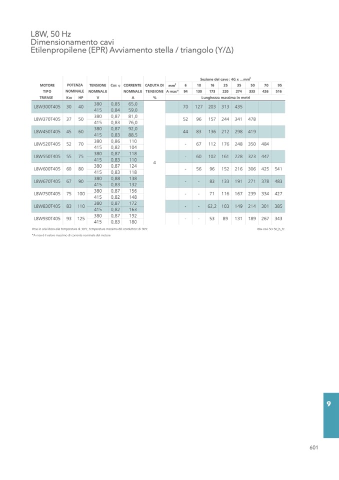 Sezione del cavo: 4G x ...mm