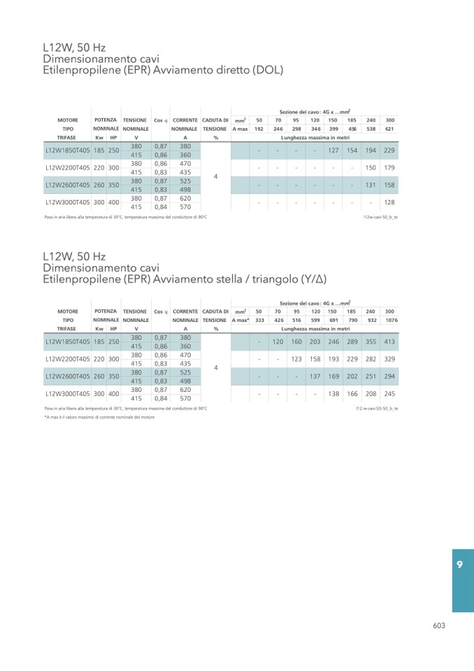Posa in aria libera alla temperatura di 30°C, temperatura massima del conduttore di 90°C