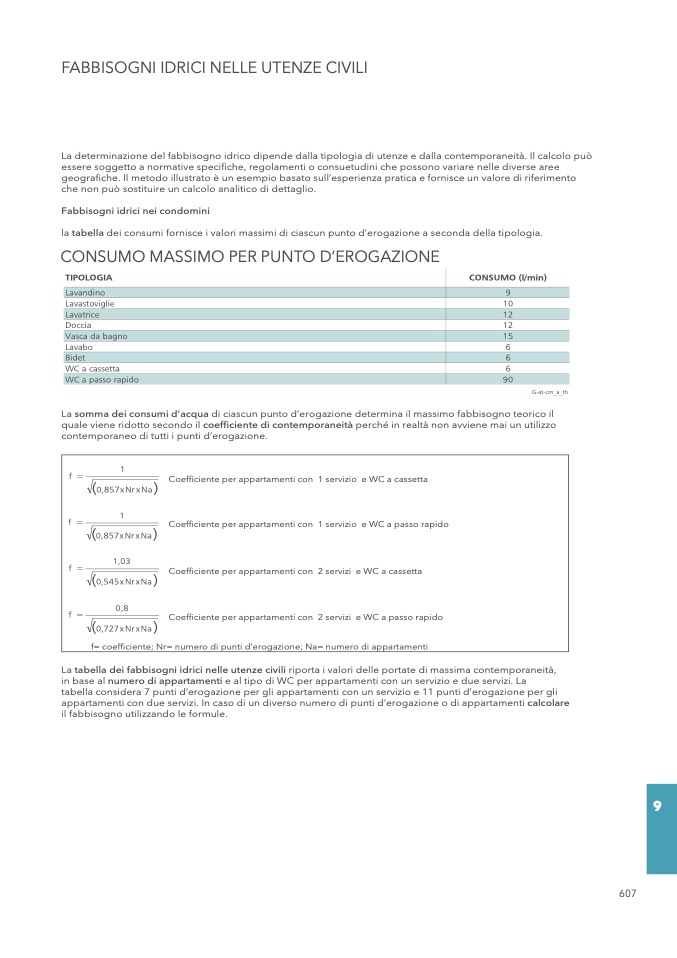 La determinazione del fabbisogno idrico dipende dalla tipologia di utenze e dalla contemporaneità. Il calcolo può