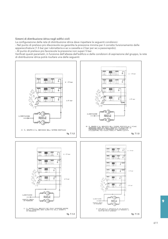 apparecchiature (1.5 bar per rubinetteria e wc a cassetta e 2 bar per wc a passorapido).