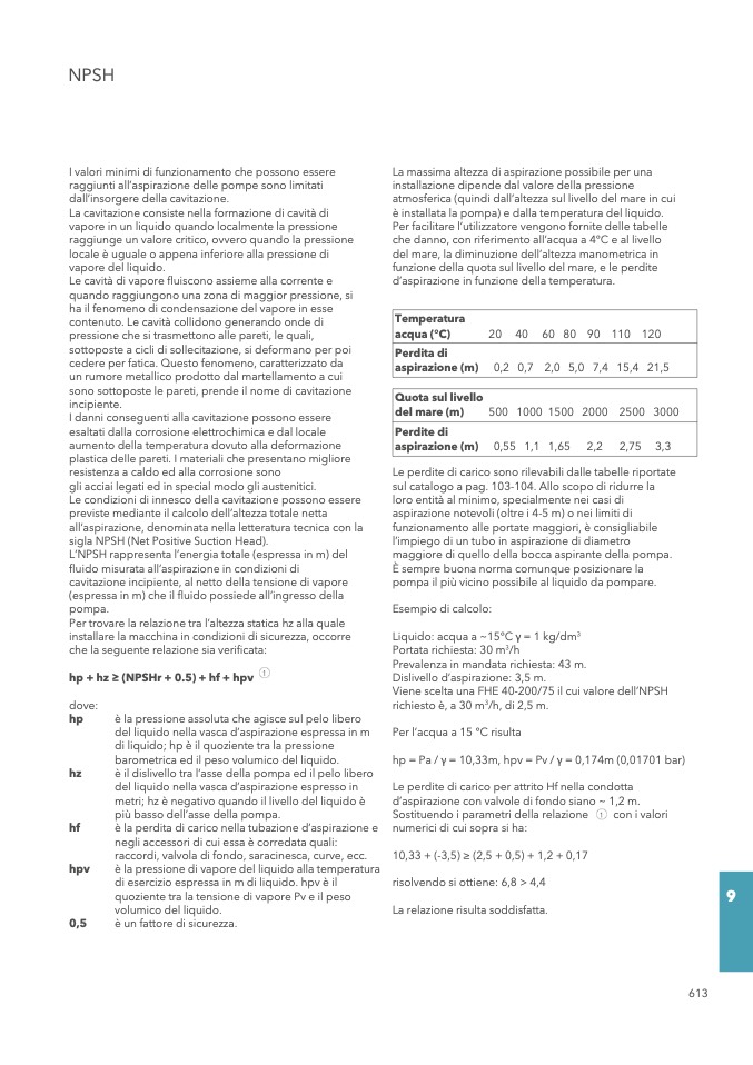 Viene scelta una FHE 40-200/75 il cui valore dell’NPSH