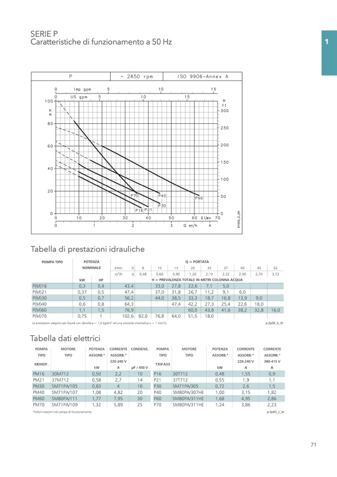 Le prestazioni valgono per liquidi con densità = 1,0 kg/dm