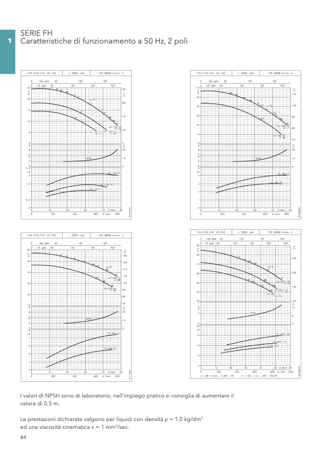 I valori di NPSH sono di laboratorio; nell’impiego pratico si consiglia di aumentare il
