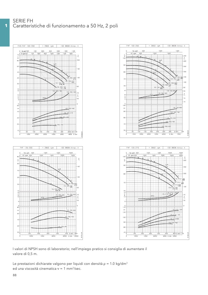 I valori di NPSH sono di laboratorio; nell’impiego pratico si consiglia di aumentare il