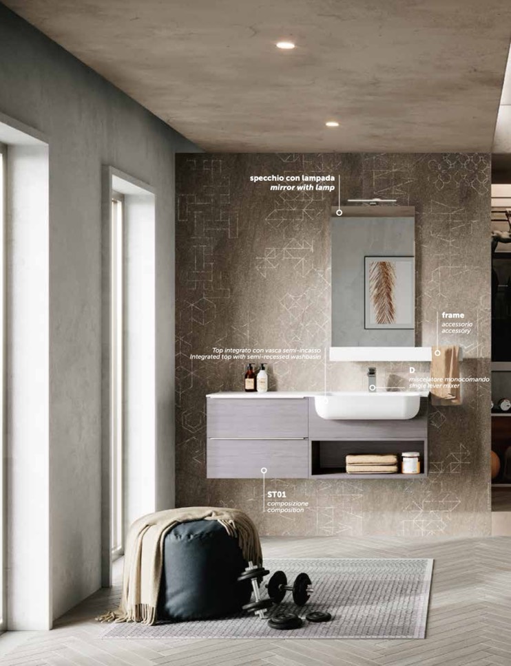Top integrato con vasca semi-incasso