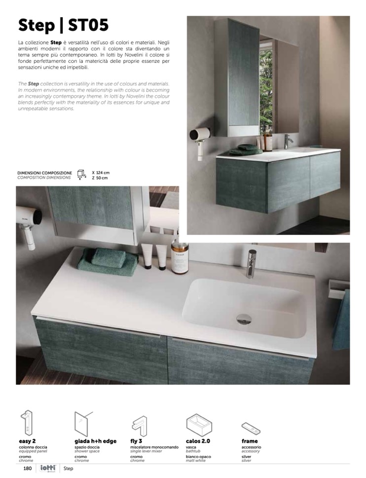 La collezione Step è versatilità nell’uso di colori e materiali. Negli