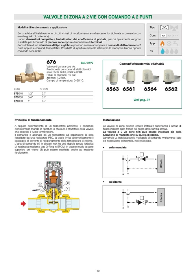 La valvola a 2 vie serie 676 può essere installata sia sulla
