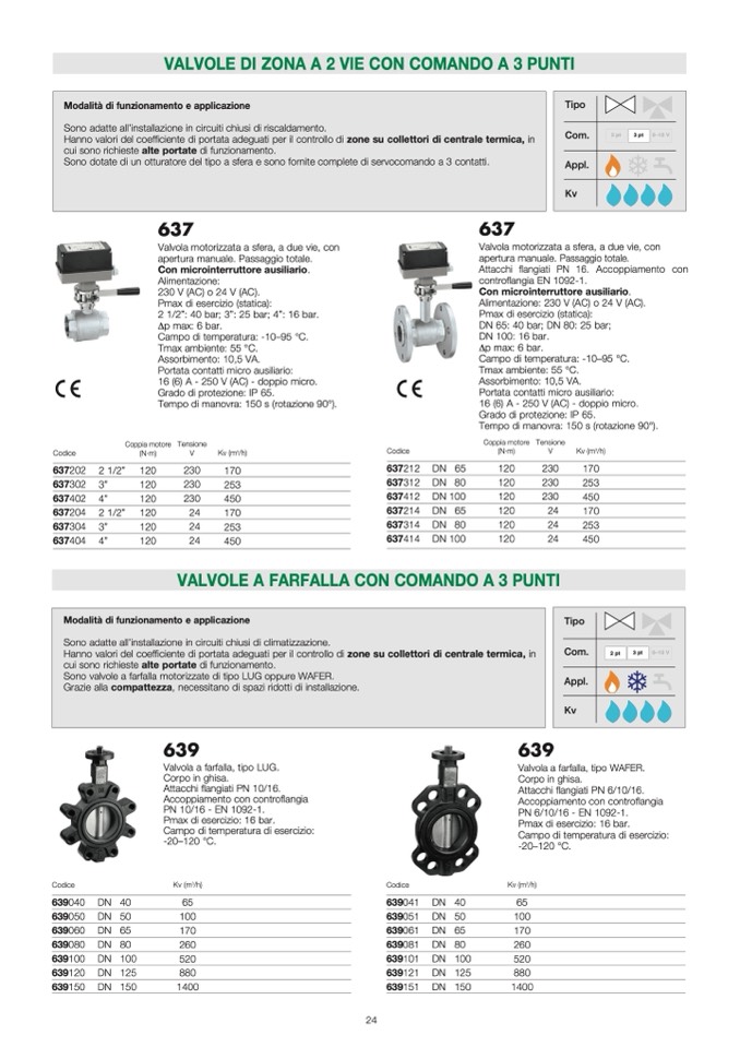 Sono dotate di un otturatore del tipo a sfera e sono fornite complete di servocomando a 3 contatti.