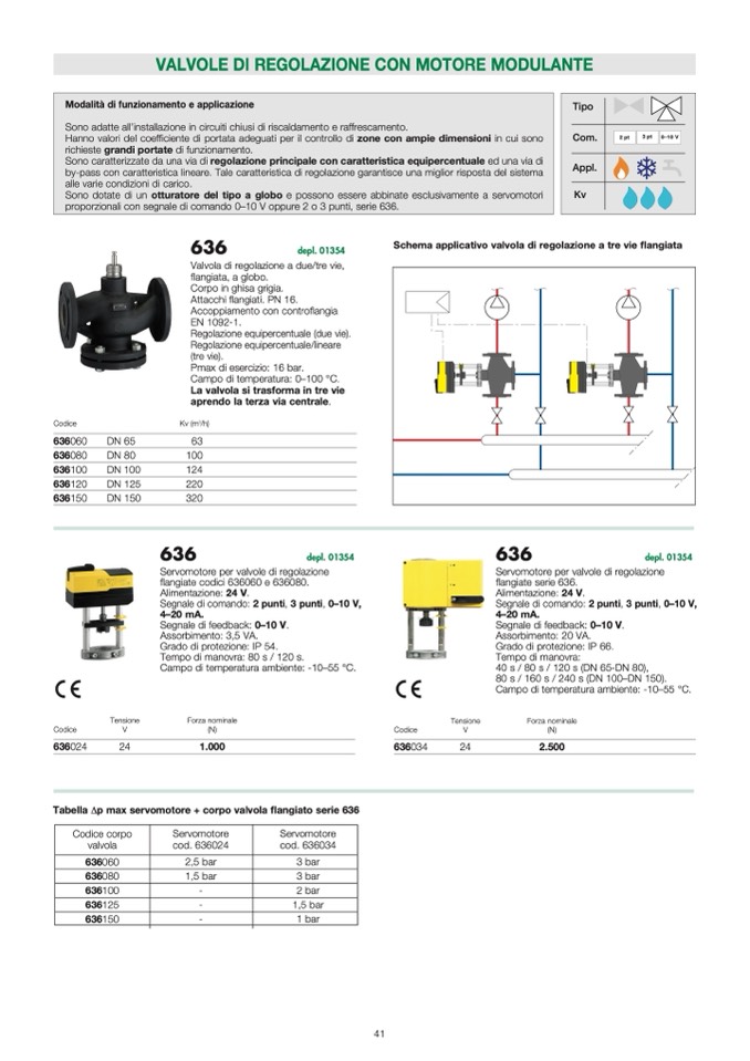 Tabella Δp max servomotore + corpo valvola flangiato serie 636