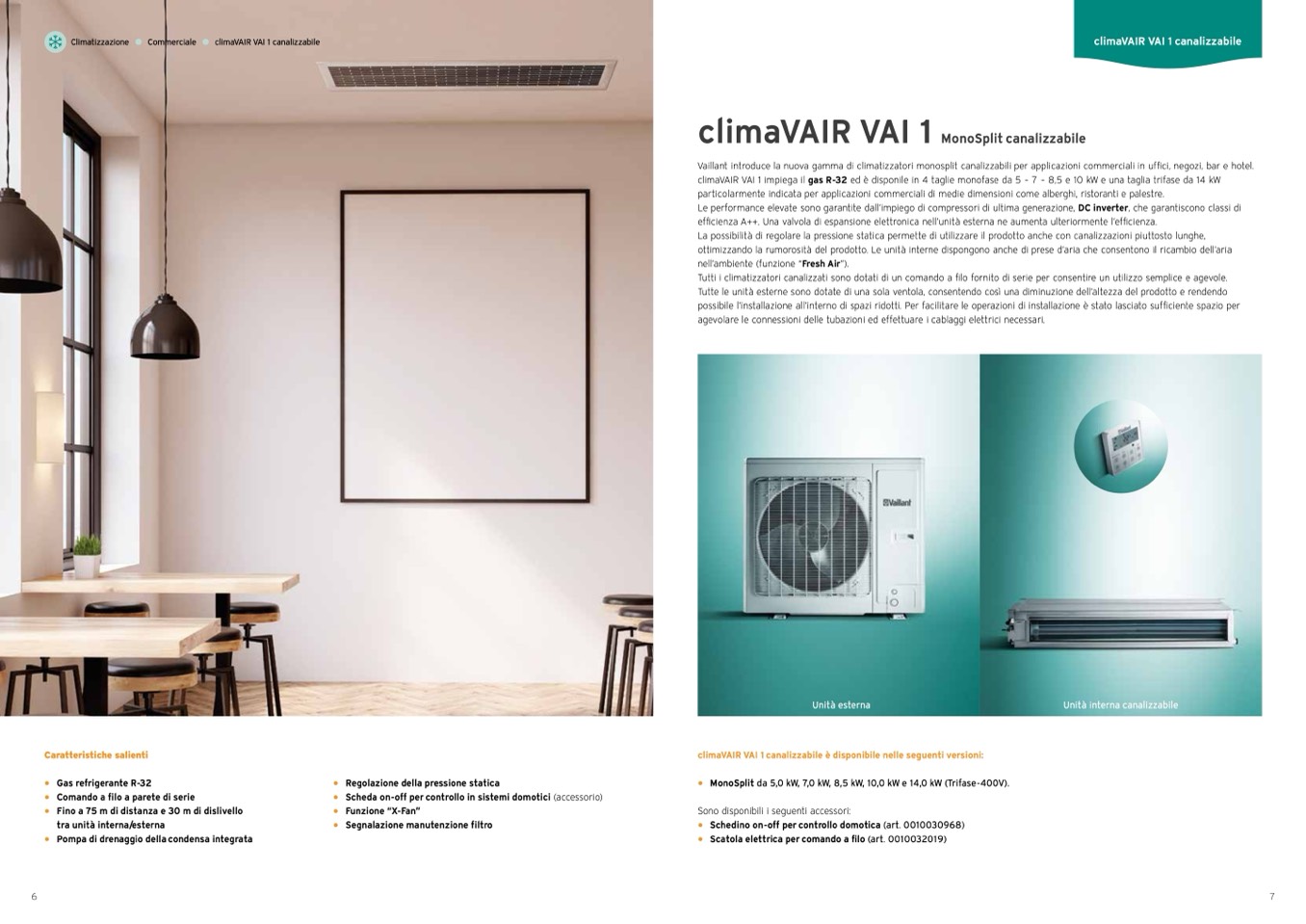 Vaillant introduce la nuova gamma di climatizzatori monosplit canalizzabili per applicazioni commerciali in uffici, negozi, bar e hotel.