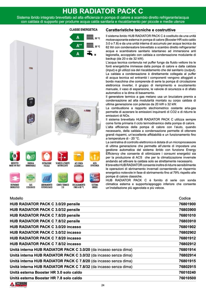 Il sistema ibrido HUB RADIATOR PACK C è costituito da una unità