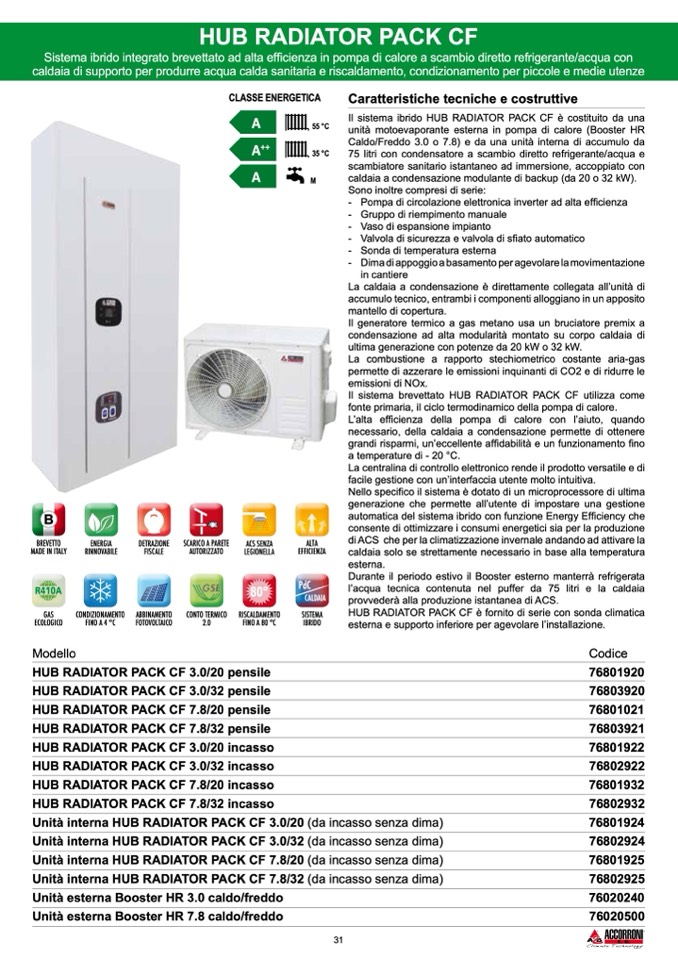 Il sistema ibrido HUB RADIATOR PACK CF è costituito da una