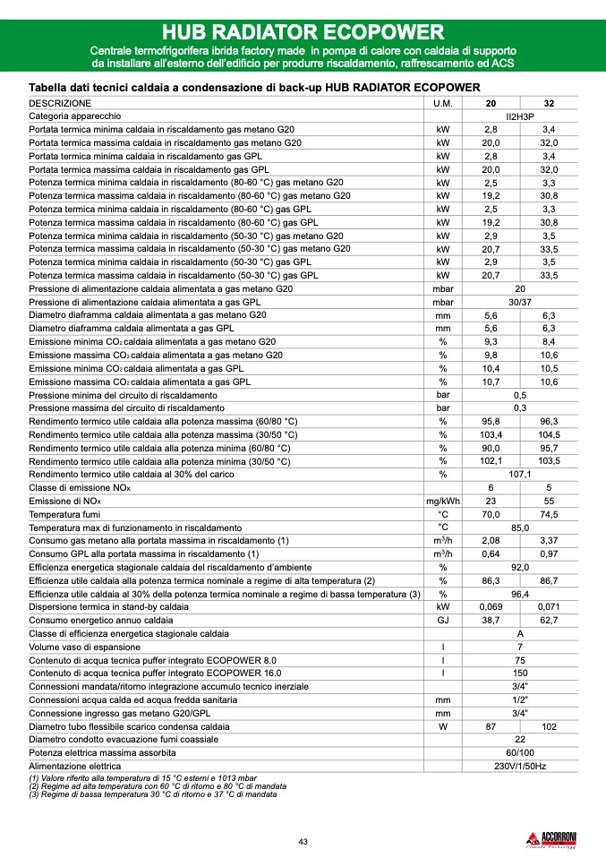 (1) Valore riferito alla temperatura di 15 °C esterni e 1013 mbar
