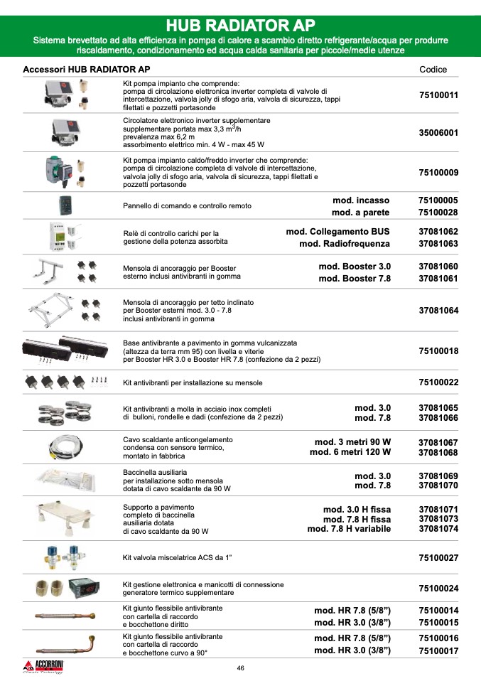 Kit pompa impianto caldo/freddo inverter che comprende: