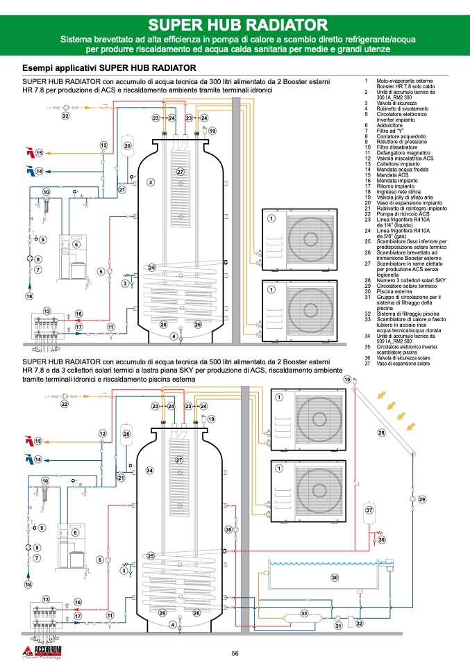 SUPER HUB RADIATOR con accumulo di acqua tecnica da 500 litri alimentato da 2 Booster esterni