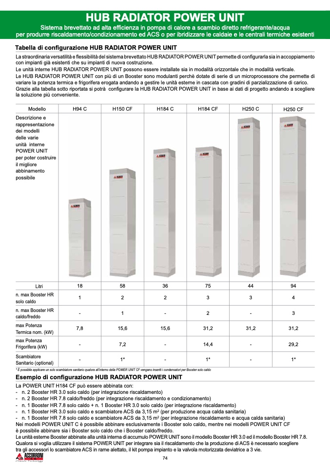Le HUB RADIATOR POWER UNIT con più di un Booster sono modulanti perchè dotate di serie di un microprocessore che permette di