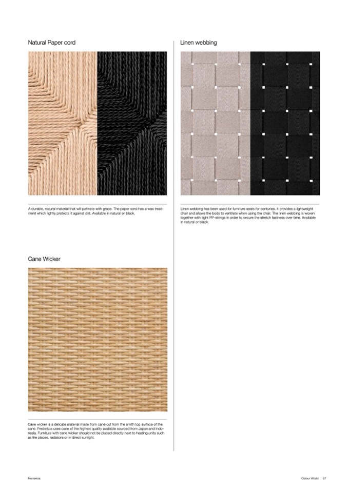 cane. Fredericia uses cane of the highest quality available sourced from Japan and Indo-