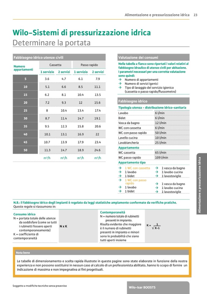 Le tabelle di dimensionamento e scelta rapida illustrate in queste pagine sono state elaborate in funzione della nostra
