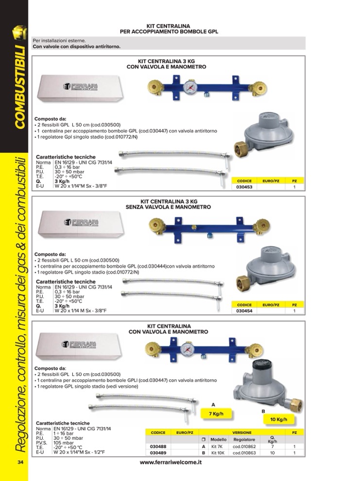 • 1 regolatore GPL singolo stadio (cod.010772/N)