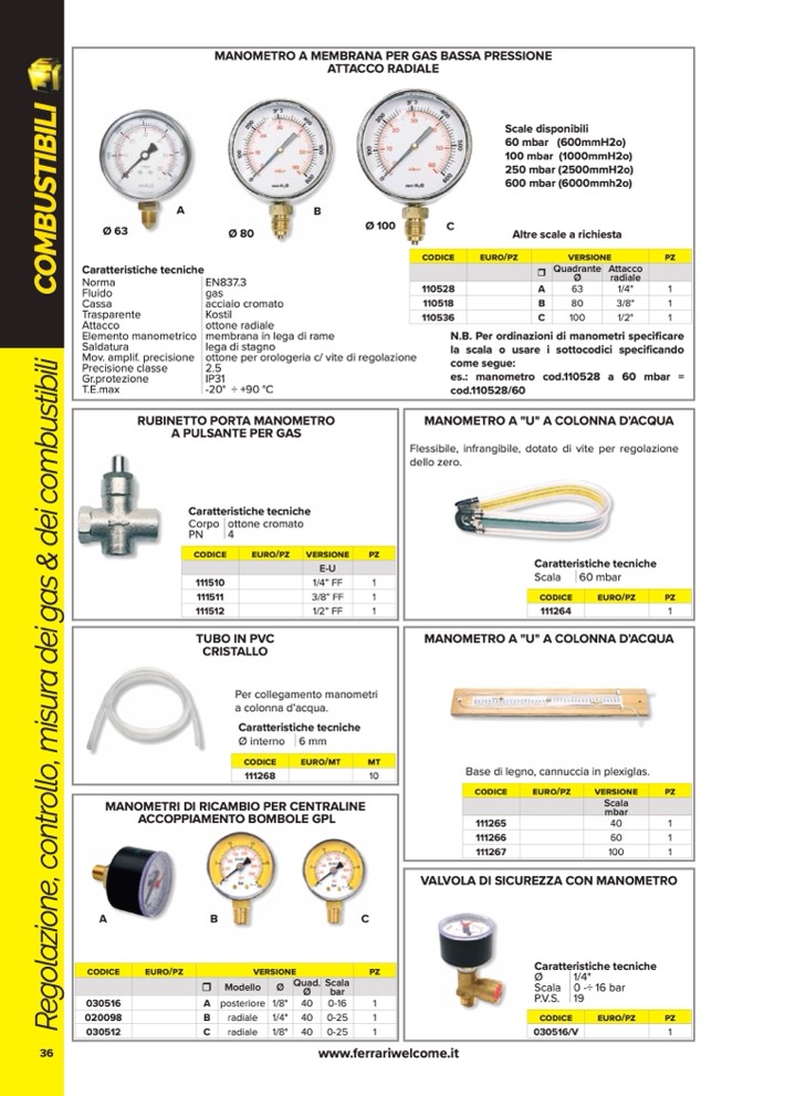 MANOMETRI DI RICAMBIO PER CENTRALINE