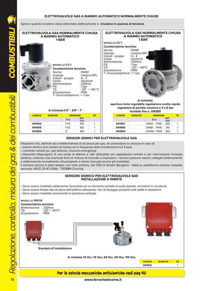 Per le valvole meccaniche antisismiche vedi pag 42