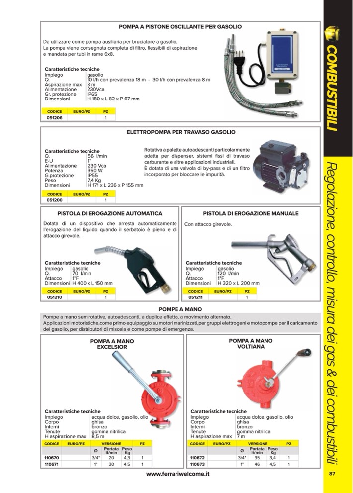 del gasolio, per distributori di miscela e come pompe di emergenza.
