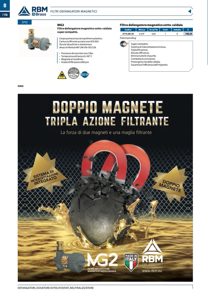 Filtro defangatore magnetico sotto-caldaia
