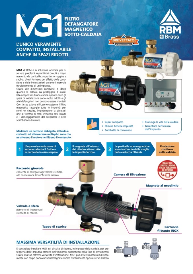 È consigliato installare MG1 sul circuito di ritorno, in ingresso della caldaia, per pro-
