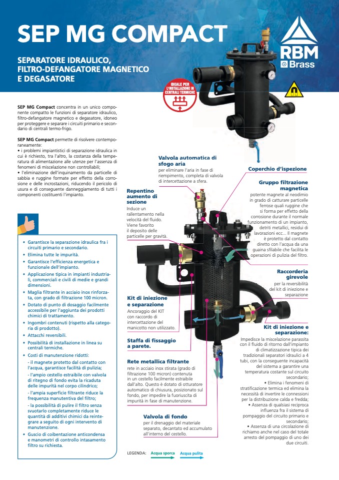 nente compatto le funzioni di separatore idraulico,