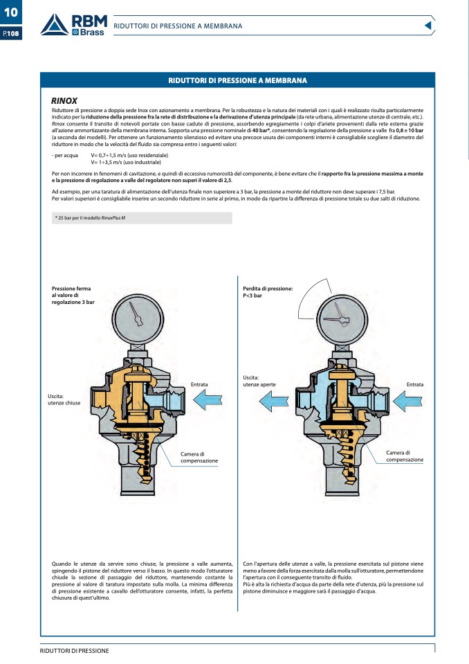 indicato per la riduzione della pressione fra la rete di distribuzione e la derivazione d’utenza principale (da rete urbana, alimentazione utenze di centrale, etc.).