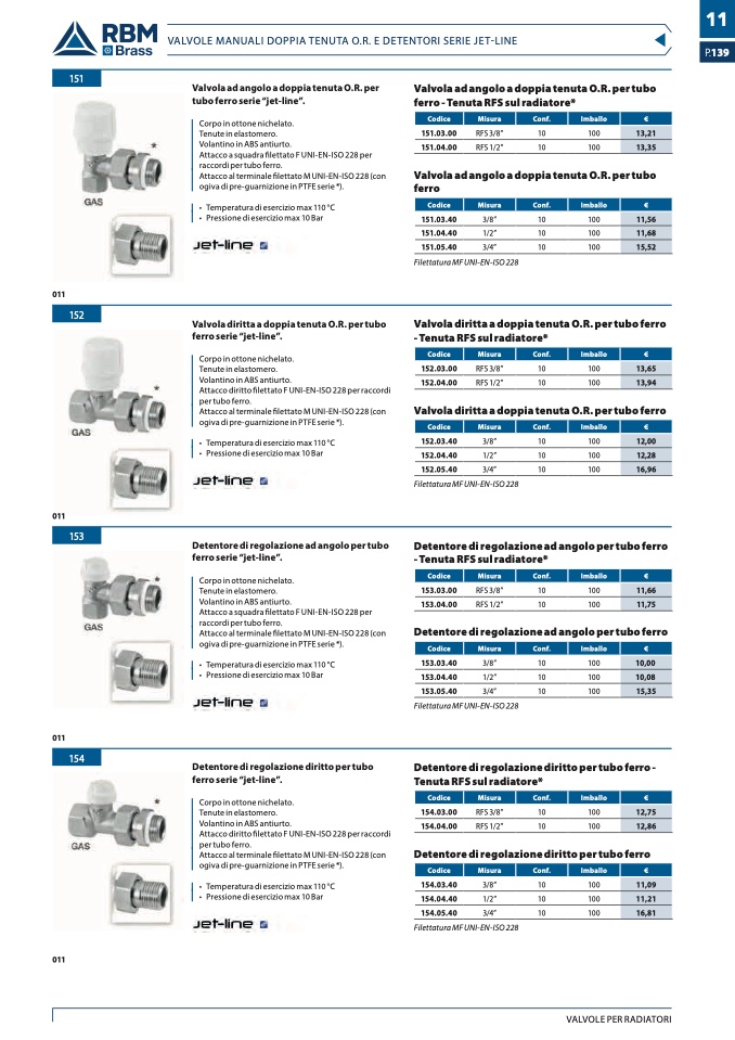 VALVOLE MANUALI DOPPIA TENUTA O.R. E DETENTORI SERIE JET-LINE