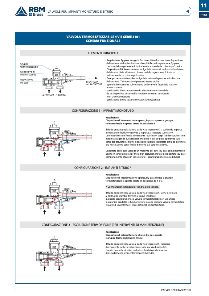 della valvola da impianti monotubo a bitubo e di regolazione By-pass.