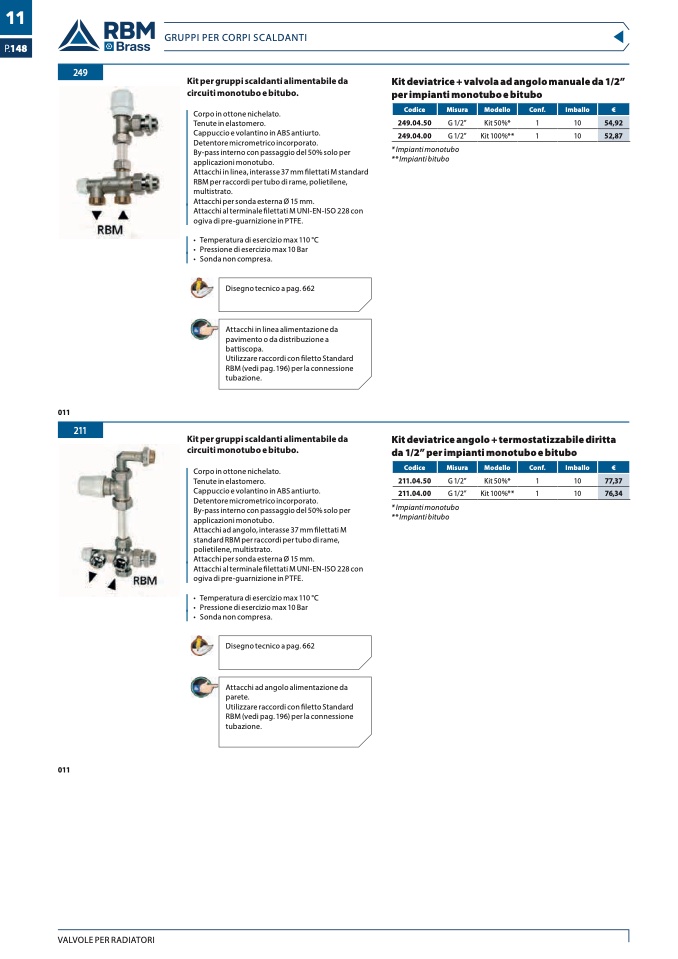 da 1/2” per impianti monotubo e bitubo